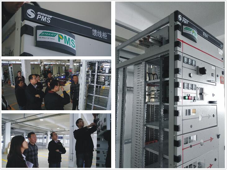 三公司总经理张总,电气公司总经理郑总,科技公司总经理李总,生产办公室经理邱经理,质检中心吴经理等各部门负责人共同参观了由技术中心研发,生产管理中心、采购中心以及电气、结构车间共同完成的新柜型Smart PMS的产品评审会。